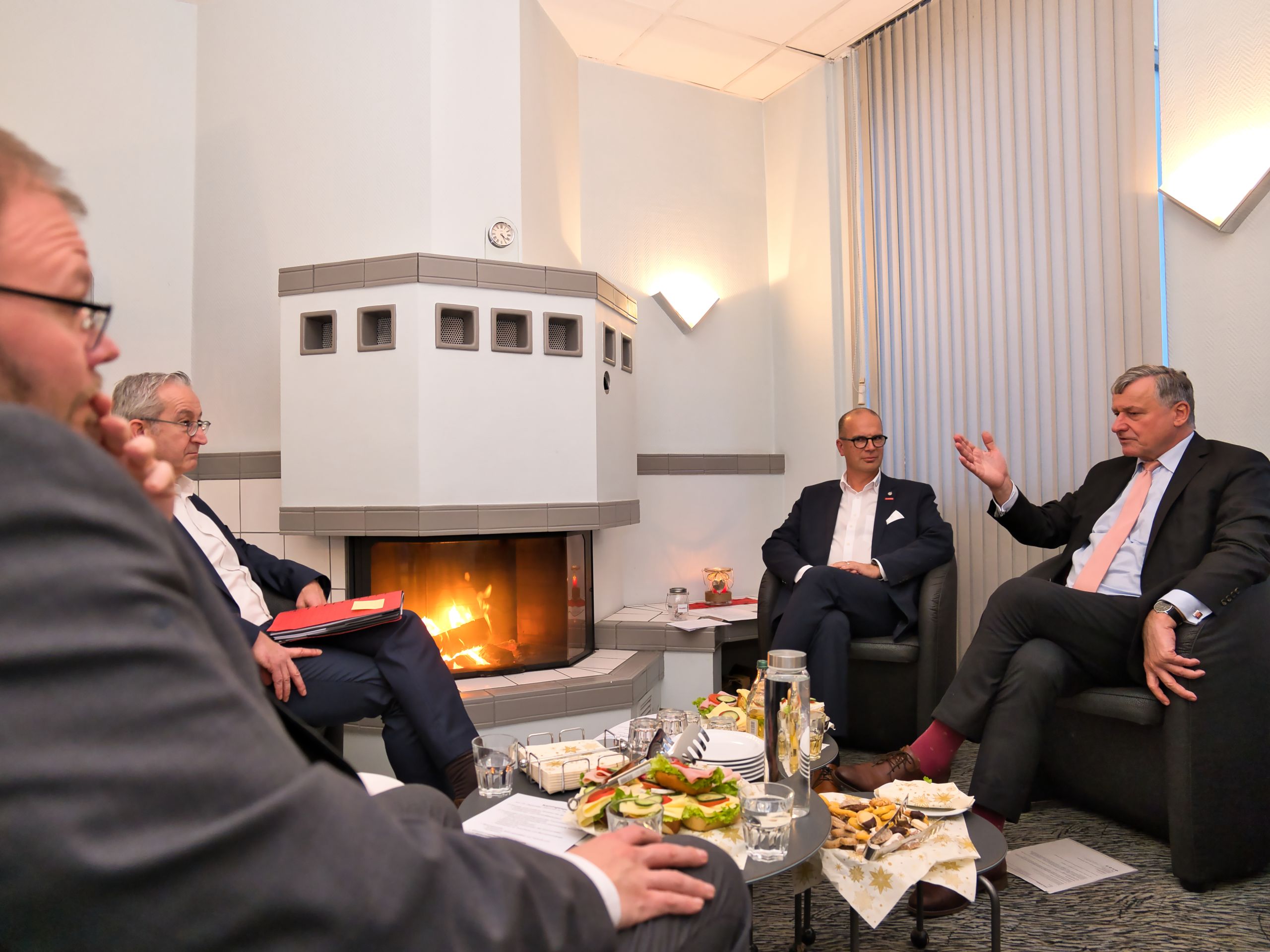 Hier unterhalten sich Gleichgesinnte: Das wurde beim zweiten Kamingespräch der Spitze des Fachverbands Sanitär-Heizung-Klima Baden-Württemberg (FV SHK-BW) kurz vor Weihnachten mit Hans-Ulrich Rülke deutlich, dem Vorsitzenden der Landes-FDP und der FDP/DVP- Fraktion im Landtag von Baden-Württemberg. Gleich zu Beginn erinnerte der liberale Gast an seine zahlreichen früheren Besuche bei Verbandstagen sowie beim Energie- und Gebäudetechniktreff SHKontakt. Seit 20 Jahren ist der 64-Jährige Mitglied des Landtags und war somit noch Teil der letzten schwarz-gelben Landesregierung, die im Jahr 2011 endete.